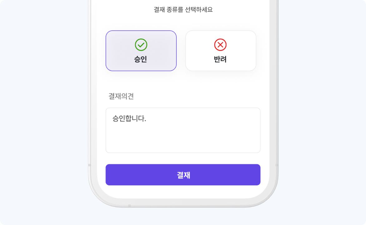 모든 전표 유형에 대해 조직도 기반 결재 라인을 자동 구성하고, 승인자별 결재 이력과 코멘트를 기록하며 전표와 함께 보관됩니다.