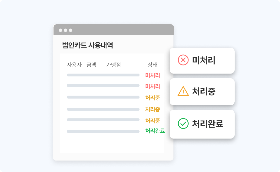 개인형 법인카드, 기명식 법인카드 모두 효율적으로 처리할 수 있도록 지원합니다.