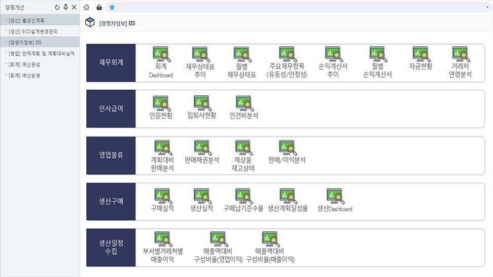 재무회계/인사급여/영업물류/생산구매/원가정보 제공