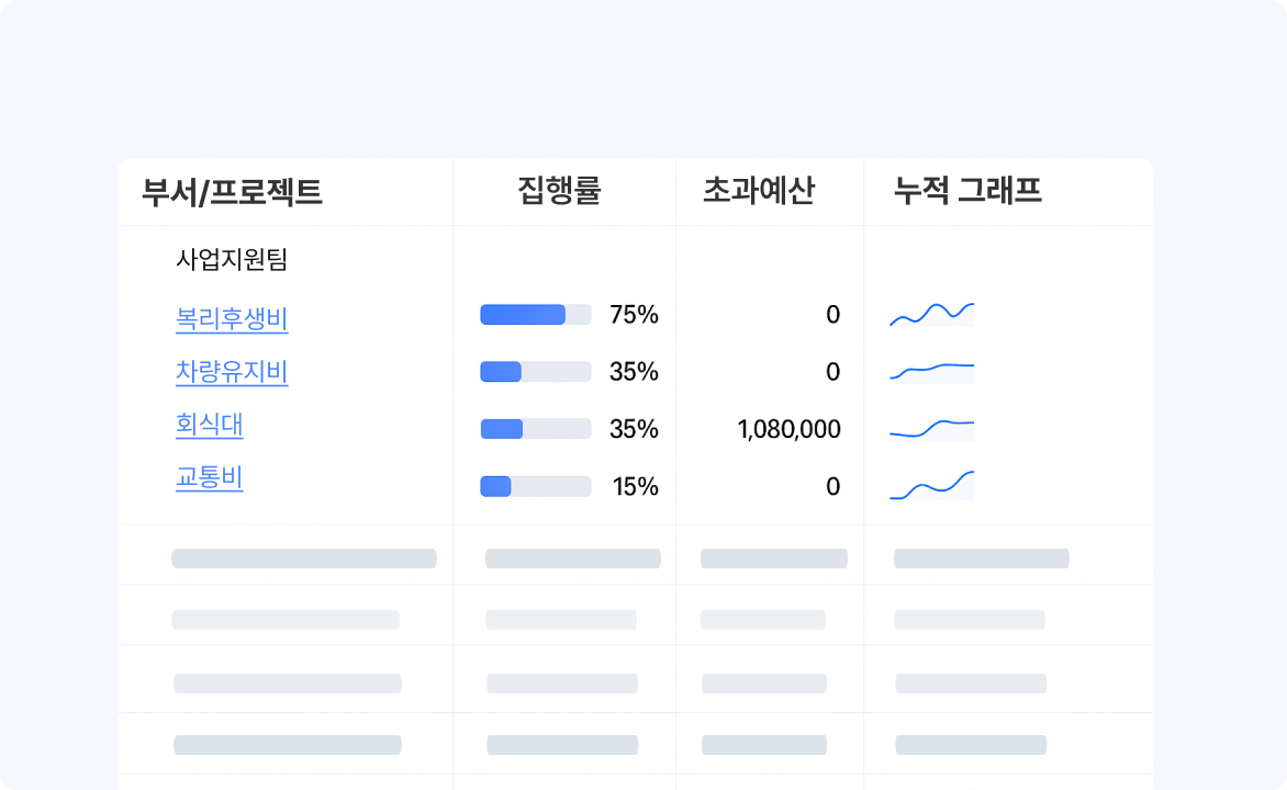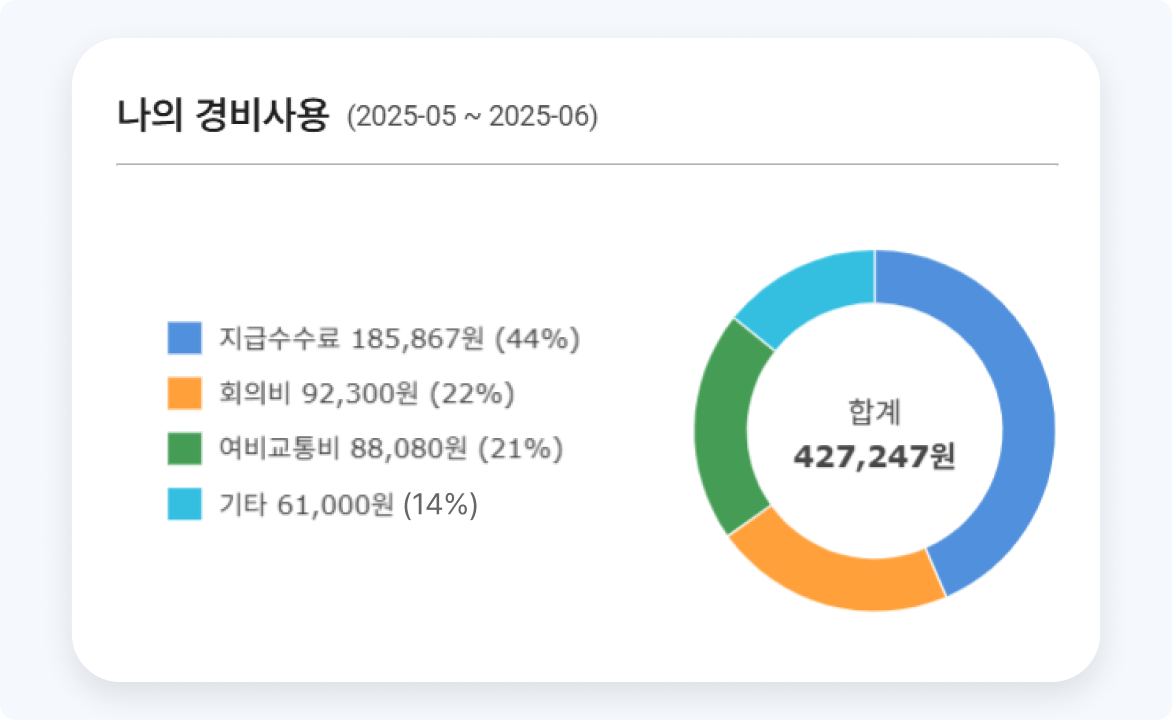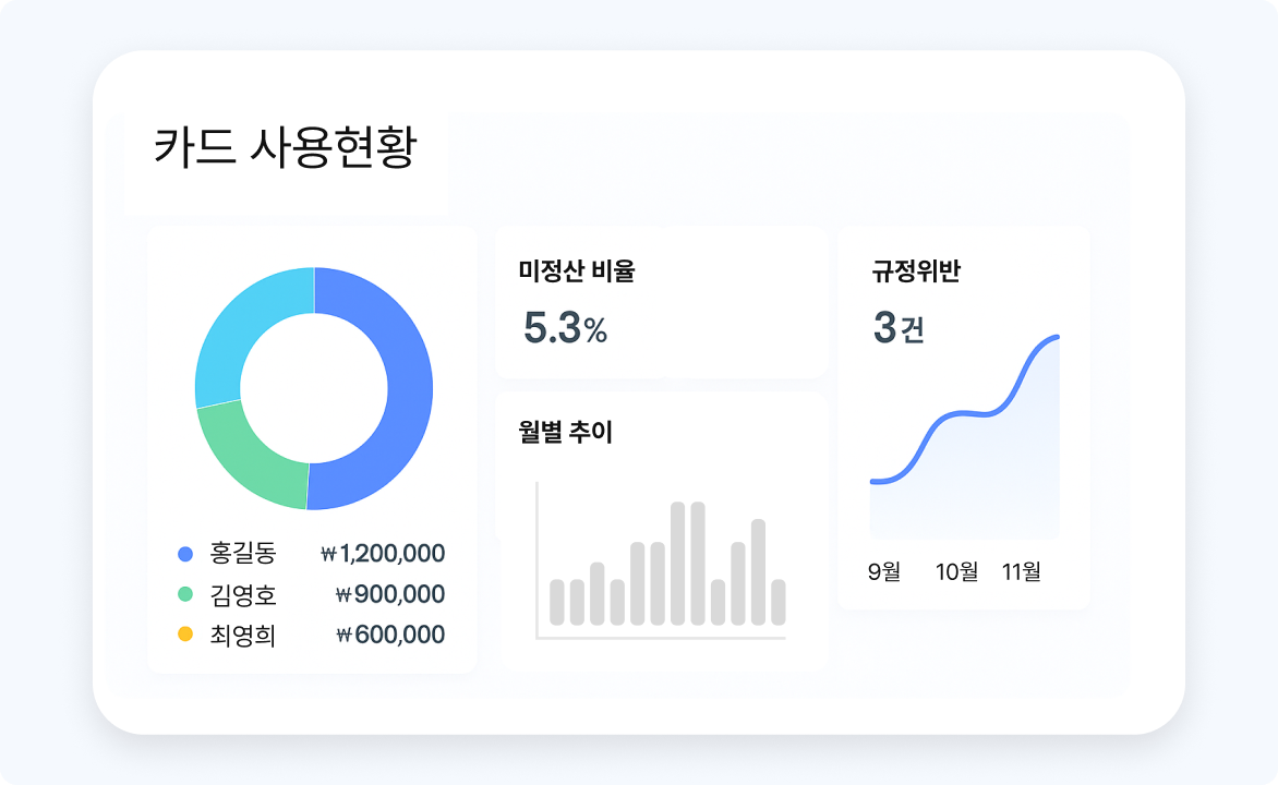 사용자, 부서, 프로젝트 단위로 지출 규모와 추이를 분석할 수 있도록 지원합니다.