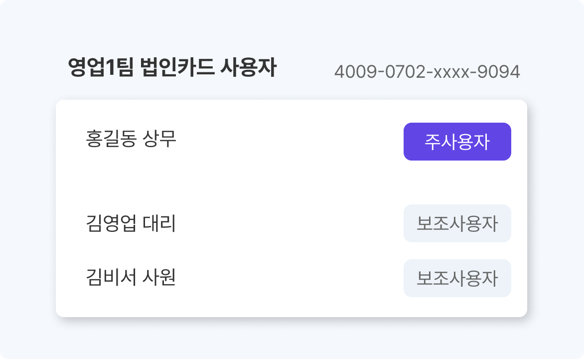 개인형 법인카드, 기명식 법인카드 모두 효율적으로 처리할 수 있도록 지원합니다.