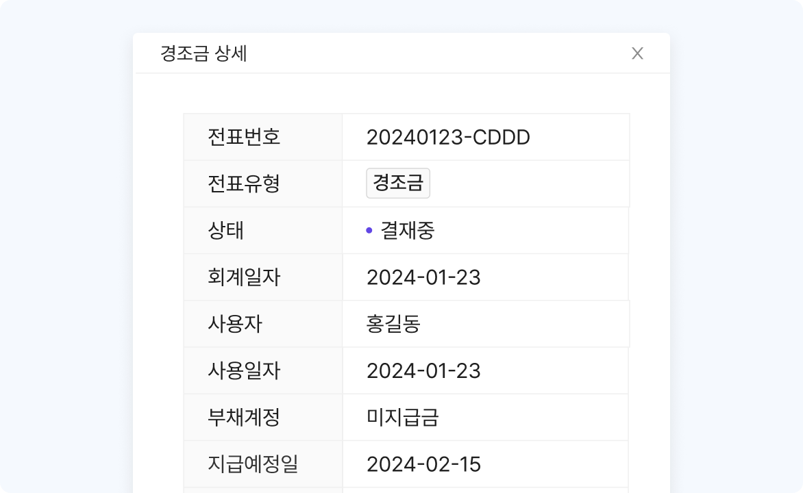 경조금 기능은 전자결재 양식 기반으로 등록 및 관리하여, 누락 없이 공정하고 체계적으로 운영할 수 있습니다.