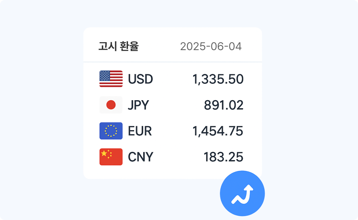 환율정보, 유류단가, 지도 데이터 등 외부 공공/상업 데이터를 실시간 수신하여 전표 처리의 정확성과 신뢰도를 높입니다.