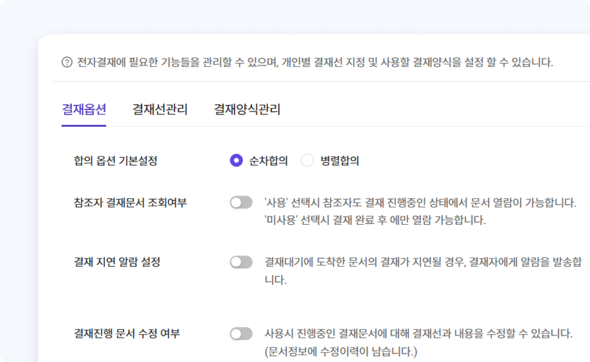 특히 조직 변화나 규정 변경 시에도 즉각 반영할 수 있어, 경영관리, 감사, 대응, 사용자 편의성까지 고려한 유연한 구조 설계가 가능합니다.