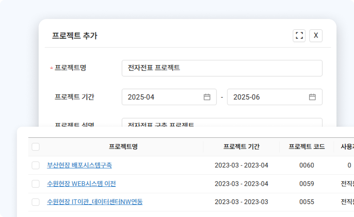 엑셀 업로드 및 권한 제어 기능을 통해 손쉽게 유지보수 할 수 있습니다.