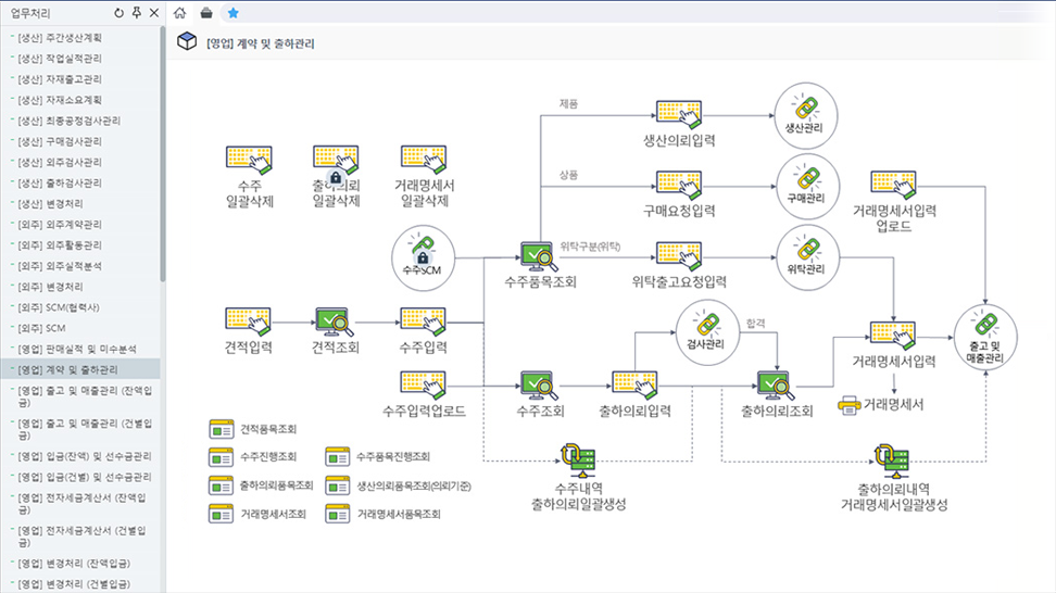 부문별 수행업무를 프로세스 형태의 시각화된 메뉴로 제공함으로써 업무