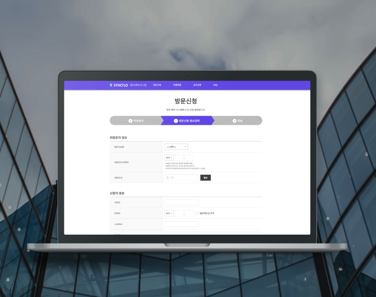 방문 신청부터 입·퇴실까지 One-Stop 방문 관리 SyncFlo Visit Solution